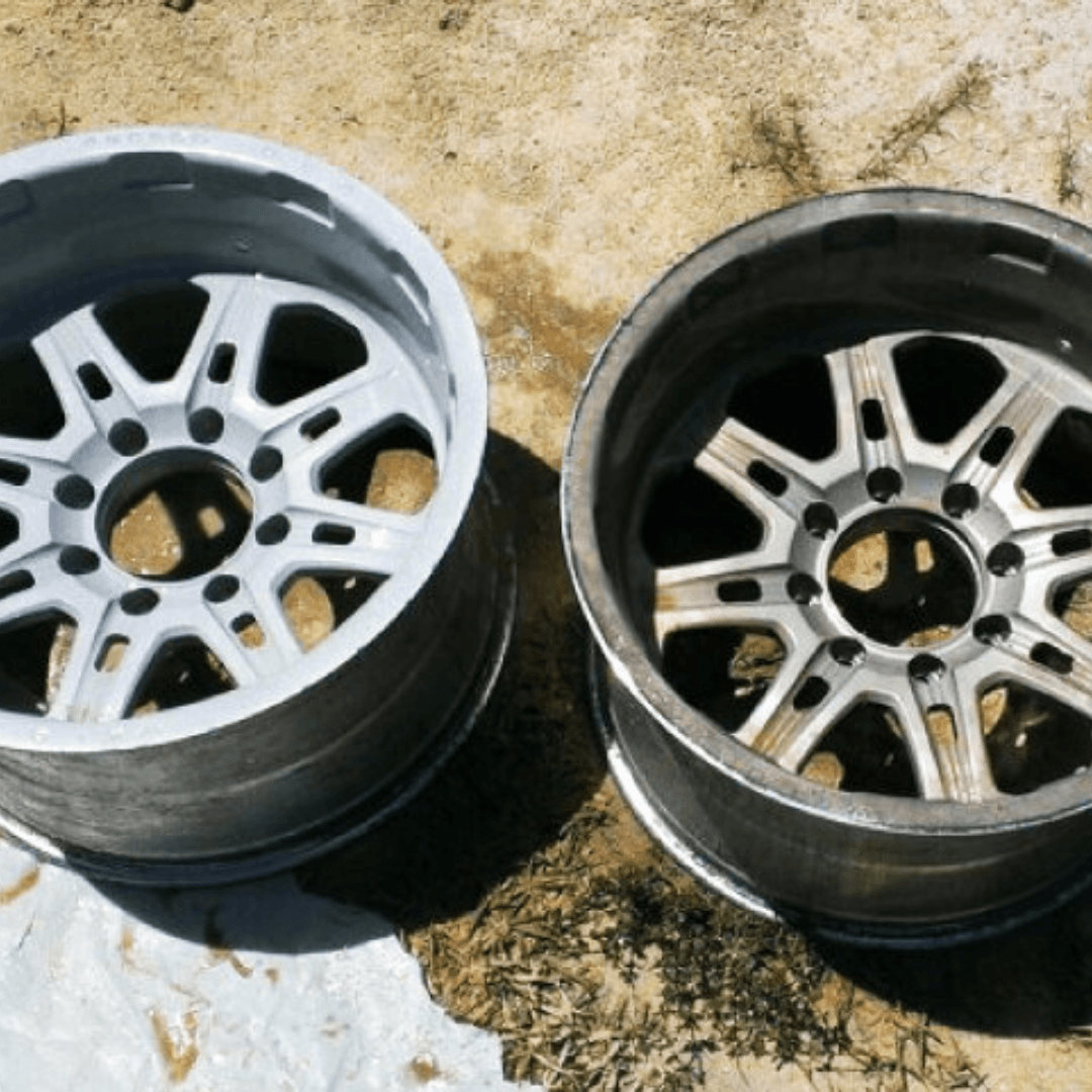 Tackle corrosion on wheels and rims with precision. Our process safely removes layers of paint, dirt, and oxidation, leaving a clean surface ready for refinishing. Contact us at 1-800-285-9834 or californiadustlessblasting.com. #RimRefinish #WheelCare #MetalRestoration #DustlessClean #BeforeAndAfterResults